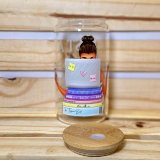 16oz Book and Coffee Glass Cup